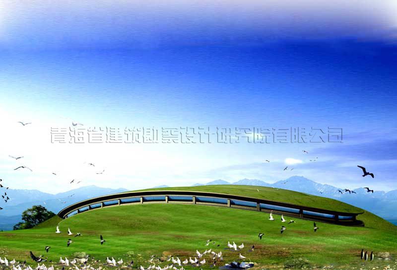 整個建筑為半地下室工程,凸出地面部分在屋面、墻面覆土,并培植草地與原環(huán)境融為一體,減少了對鳥類生態(tài)、環(huán)境的破壞和污染。
